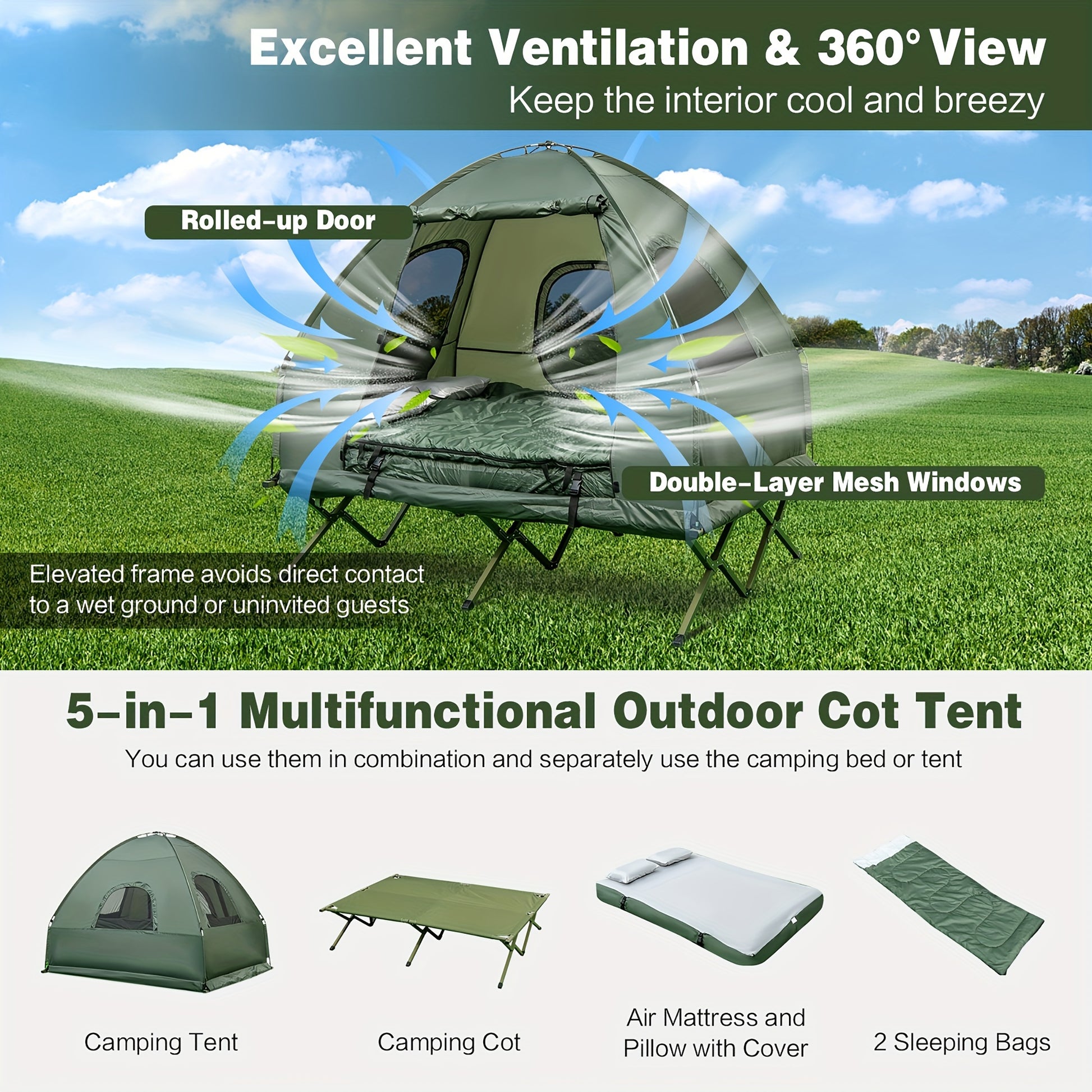 GYMAX 2 Person Compact Portable Pop Up Tent Camping Cot with Air Mattress and Sleeping Bag