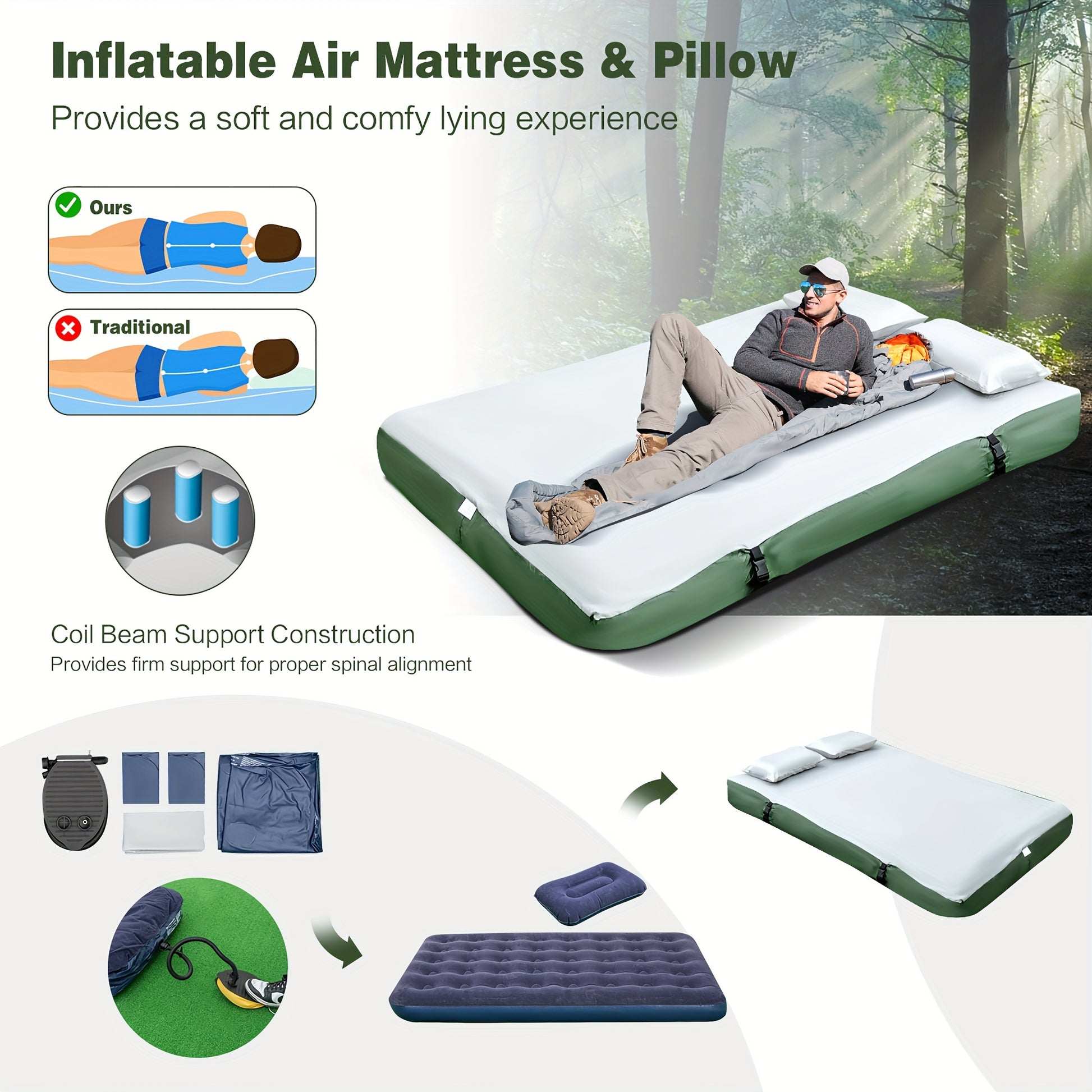 - Premium Comfort: The upgraded 9'' air mattress and pillows ensure a cozy sleep experience, while the coil beam support construction minimizes noise and enhances stability.